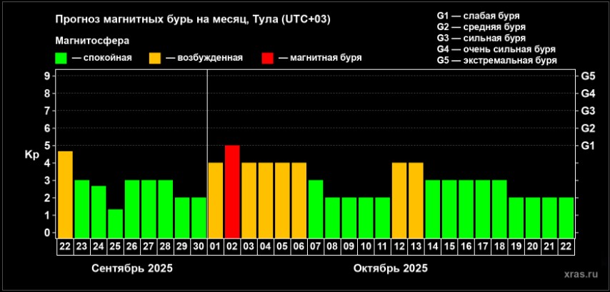 С большей точностью в прогнозе на ближайший месяц говорится о буре 2 октября. При этом в начале второго осеннего месяца магнитосфера будет возбужденной на протяжении нескольких дней.