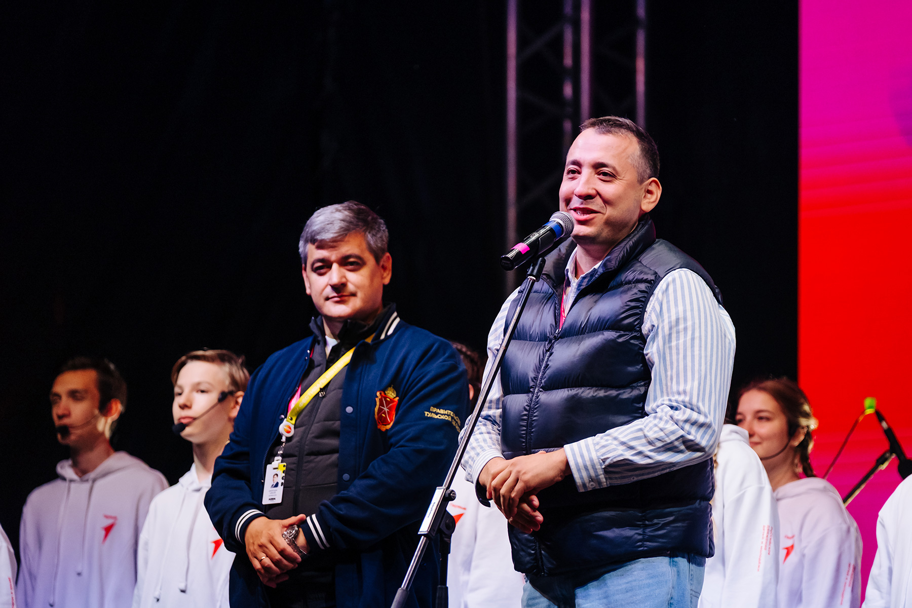 От имени Дмитрия Миляева присутствующих поприветствовал его заместитель Алексей Давлетшин. Он выразил благодарность объединению «АМИК» и «Движению Первых» за возможность провести фестиваль в Тульской области. Ребятам Давлетшин пожелал быть активными, заниматься творчеством и подчеркнул, что правительство сделает все возможное для комфортного пребывания команд в регионе: