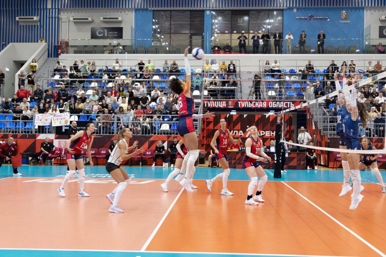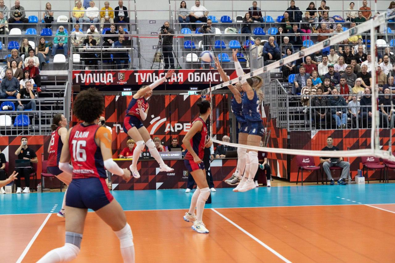 В матче открытия на площадку вышли волейболистки из Тулы и Белоруссии.