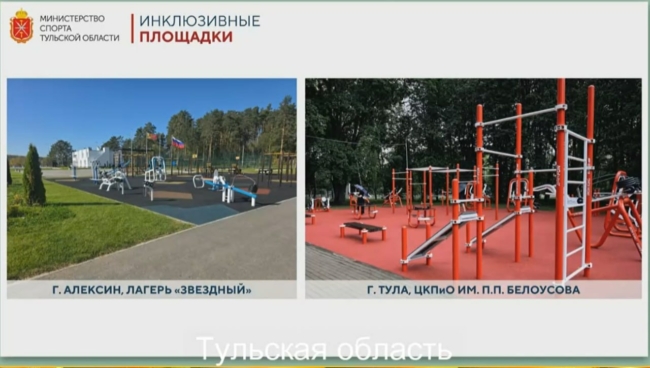 Благодаря поддержке социальных партнеров в 2024 году на территории региона была успешно завершена работа по созданию пяти инклюзивных спортивных площадок. Четыре из них расположены в Туле: одна в лыжероллерном центре «Веденино» (ул. Максима Горького, 66б), две — в Центральном парке культуры и отдыха, одна — в Рогожинском парке, а также в детском лагере «Звездный» в городе Алексине. На этих объектах обустроено специальное пространство, позволяющее комфортно заниматься спортом людям с двигательными, ментальными и сенсорными особенностями.
