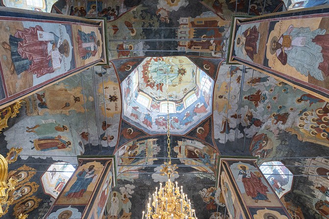 Собор был расписан летом в 1765 и 1766 годах в технике темперной клеевой живописи артелью ярославских мастеров под руководством Афанасия Андреевича Шустова. Художественная роспись в Успенском соборе – единственная его сохранившаяся в таком объеме работа. Эта живопись имеет высокую историко-культурную ценность и значимость для русской художественной культуры в целом.