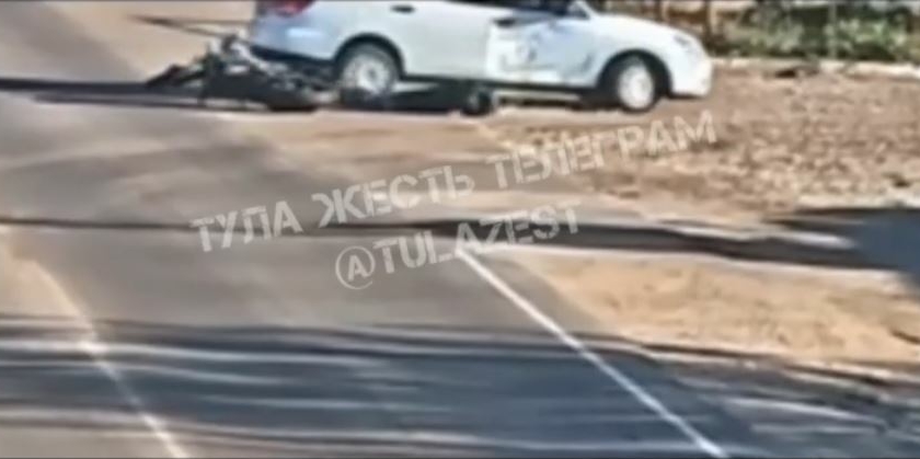 Появилось видео с камер видеонаблюдения, как легковушка сбила мотоциклиста в Узловой на улице Декабристов. Ролик опубликован в группе «Тула Жесть» («ВКонтакте»).