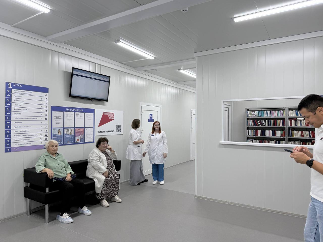 В штат амбулатории входят участковый терапевт, педиатр, фельдшер для оказания оперативной помощи. Для приема пациентов оборудованы процедурный, смотровой и прививочный кабинеты, кабинет для узких специалистов и дневной стационар.