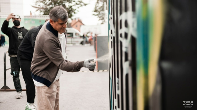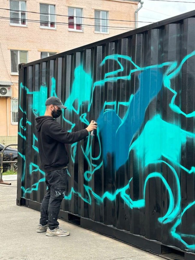 Художник Алексей рассказал, что занимается граффити с 13 лет. Причем сначала это были попытки самообучения, поскольку школ по граффити в то время не было. Потом это переросло в его основной вид деятельности и стало заработком.