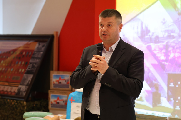 – Сегодня мы находимся в знаковом месте – Музее обороны Тулы. Вы увидите выставку «Хроники террора украинского неонацистского режима». Это человеческие судьбы и боль, запечатленные в кадрах. Мне хорошо знакомы места в Мариуполе, где мы проезжали к нашим медицинским передвижным комплексам на улице Азовстальской. Сейчас она переименована в Тульский проспект. В память врезались леденящие душу истории, рассказанные жителями Донбасса. Это наша общая боль. Но именно она сплотила людей ради помощи фронту. Тула – столица народных полков. Это наш долг, ведь нет понятия «армия-победитель», есть народ-победитель. История пишется каждый день. Герои нашего времени повторяют подвиг дедов и прадедов. Наш святой долг – сохранить память обо всех воинах, вставших на защиту Родины. Наше дело правое, мы победим!