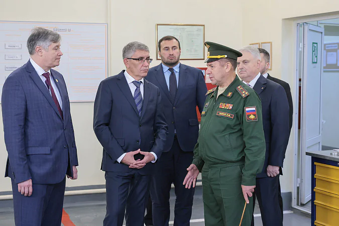 Миляев осмотрел учебные участки по обслуживанию артиллерии, минометов, танкового вооружения, БМП-3, РСЗО «Град», ПТРК и малокалиберного оружия. Особое внимание уделили классу подготовки по управлению беспилотными летательными аппаратами и учебно-ремонтному корпусу.
