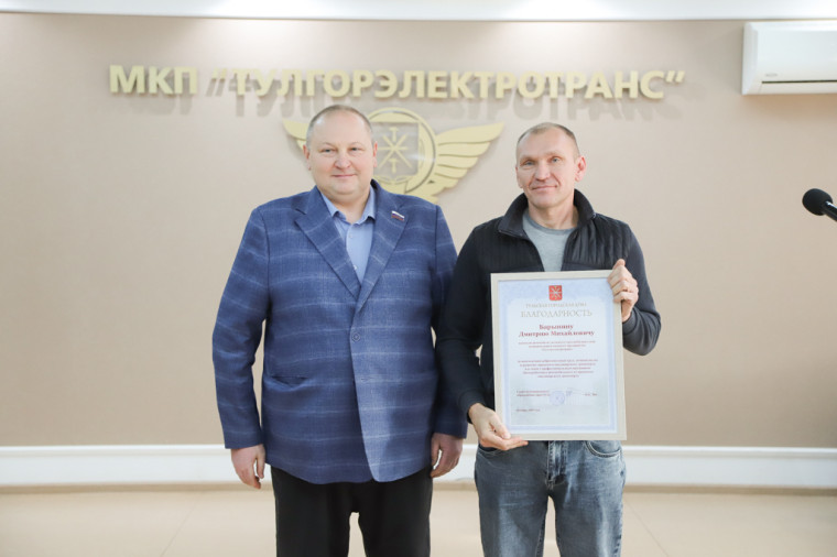Также сотрудники предприятия были отмечены Благодарностями Общероссийского профсоюза работников автомобильного транспорта и дорожного хозяйства, Благодарственными письмами Тульской городской Думы, Почетными грамотами МКП «Тулгорэлектротранс» и Благодарственными письмами управления Госавтоинспекции УМВД России по Тульской области.