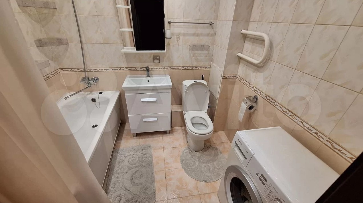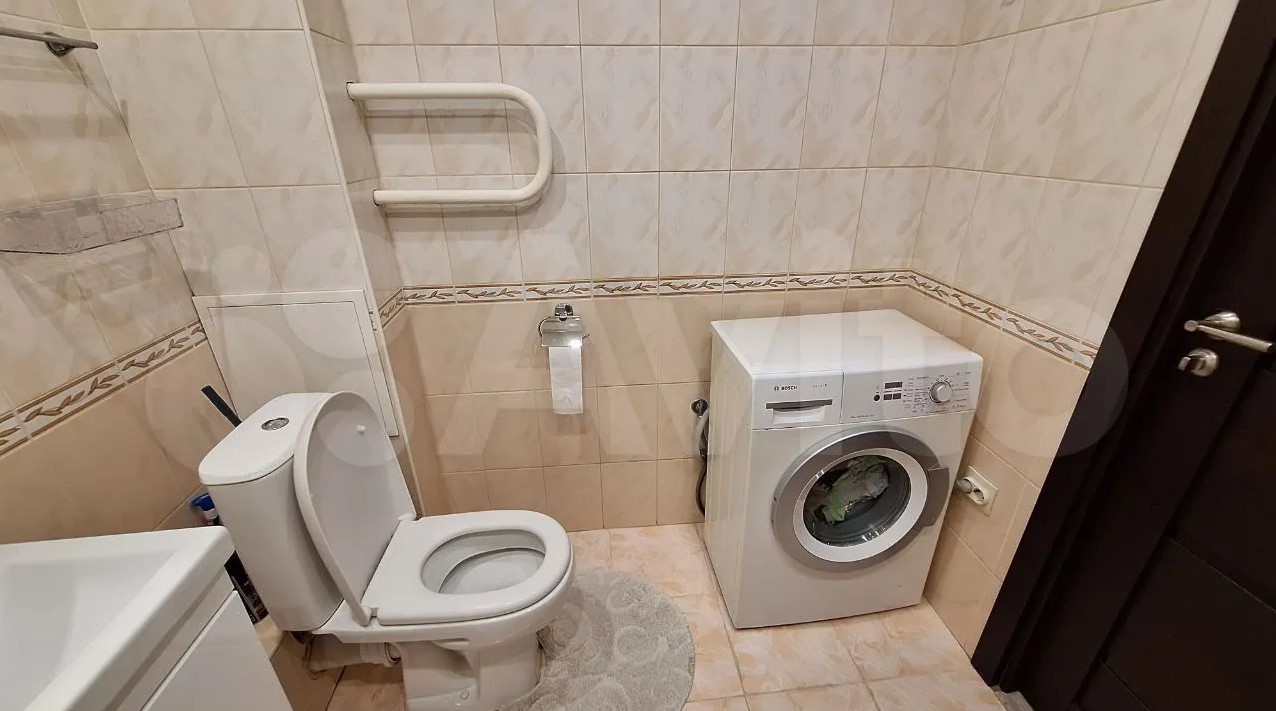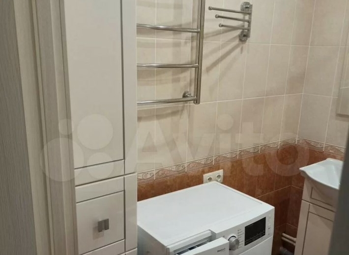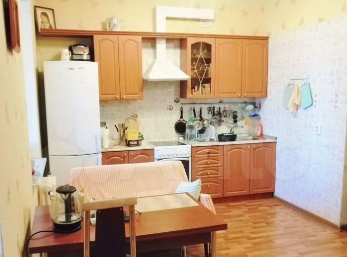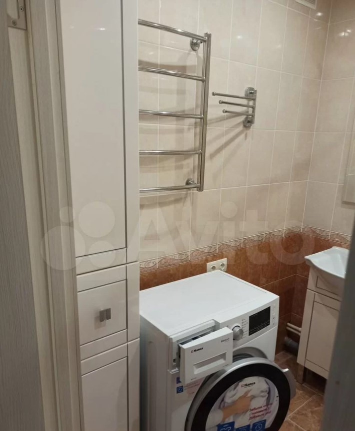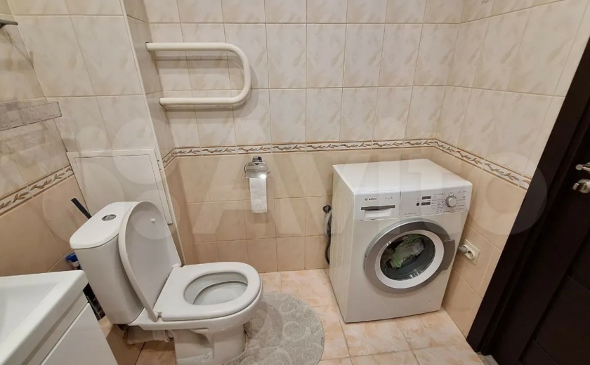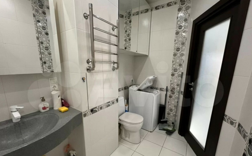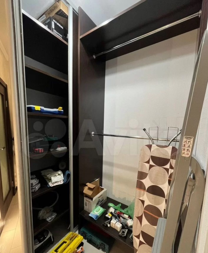 Эта «однушка» отличается лаконичным описанием. Автор объявления просто указал, что новому владельцу достанутся вся техника и мебель, вплоть до сушилки и гладильной доски.