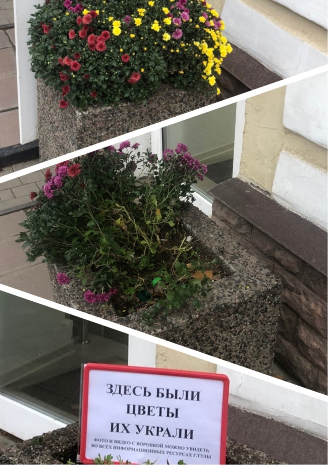 Теперь на месте разоренной клумбы установлена табличка: «Здесь были цветы. Их украли». Людмиле было обидно до слез, но она не опускает руки. «Тульской прессе» она сообщила, что на месте украденных цветов появится новая композиция. По словам хозяйки магазина, она будет приурочена к Новому году.