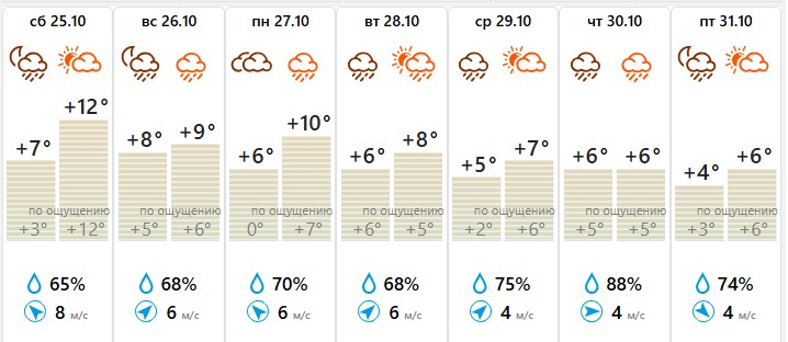 Отметим, что конец октября в Тульской области будет достаточно теплым. Ожидается переменная облачность, а столбики термометров днем и ночью будут держаться примерно на +6 градусах. Возможны дожди в течение всей следующей рабочей недели.