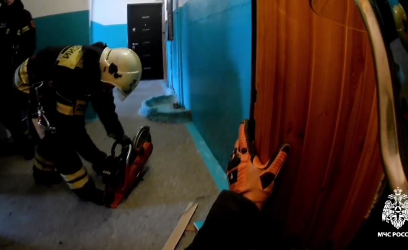 Сотрудники 25-й пожарно-спасательной части прибыли через несколько минут. Дверь в квартиру была закрыта изнутри. Спасатели вскрыли замок с помощью бензореза.