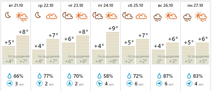 В Тульской области столбики термометров до конца недели не пересекут отметку в +10 градусов. Максимально потеплеет до +9 в пятницу. Затем столбики термометров снова опустятся и достигнут +6 градусов. До конца недели ожидаются переменная облачность и осадки.