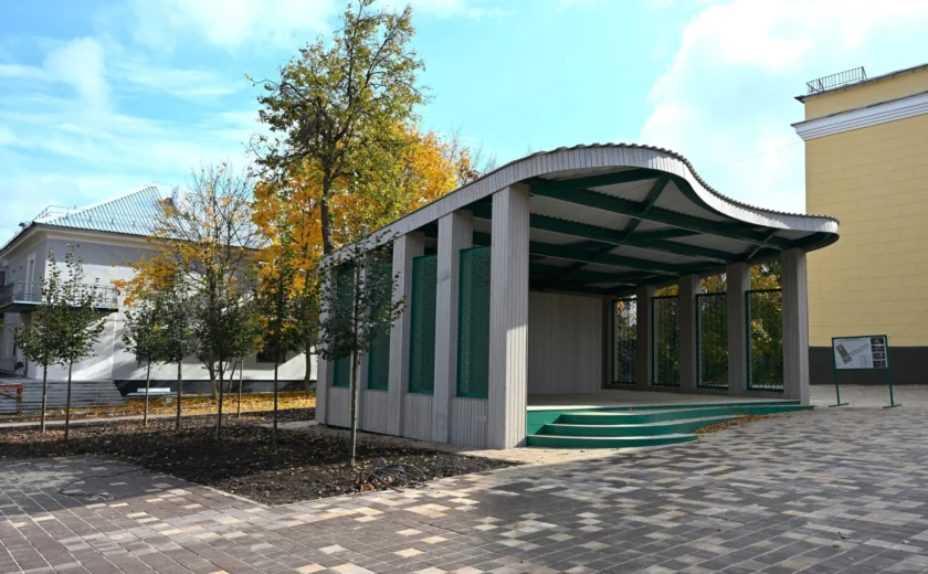 Работы ведутся на площади перед ДК и в сквере. Сейчас благоустройство приближается к финишной стадии. На площади уже появилась сцена с перфорированными боковыми перегородками, конструкция с теневым навесом, где будут качели. Также здесь установлены клумбы, высажены деревья и кустарники. Центральным элементом станет световой арт-объект.