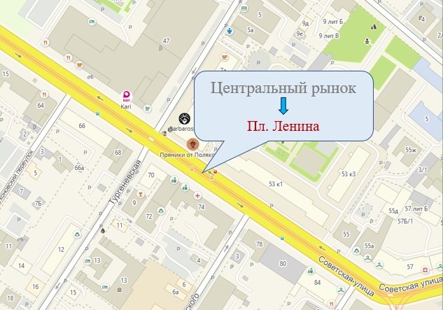 - остановка «Центральный рынок» на улице Советской — «Площадь Ленина»;