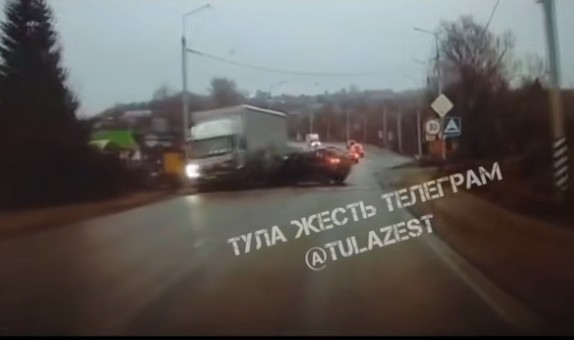 Авария в Маслове произошла днем в четверг, 27 ноября. Очевидцы прислали видео момента столкновения в телеграм-канал «Тула Жесть».