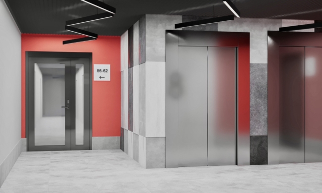 Входные группы выполнены в современном стиле. Дизайнерские холлы оформлены с использованием мягкой мебели и элементов озеленения, наполнены естественным светом.
