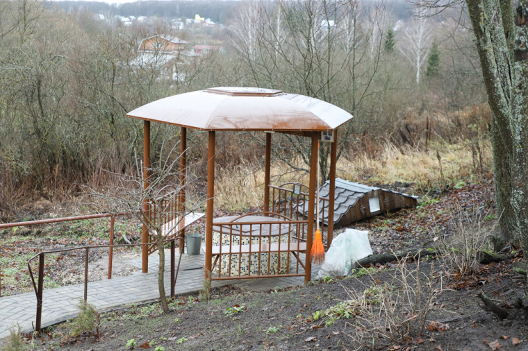 Также по просьбе жителей деревни Оленино была сделана пешеходная дорожка к святому источнику Дмитрия Солунского, проведены работы по благоустройству самого источника.
