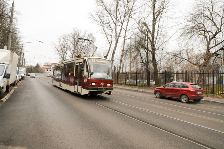 В ходе ремонта на улице Тимирязева выполнили замену асфальтового покрытия, подъем люков смотровых колодцев и ремонт межрельсового покрытия на трамвайных путях. Обустроили дополнительные решетки ливневой канализации в районе Рогожинского парка.