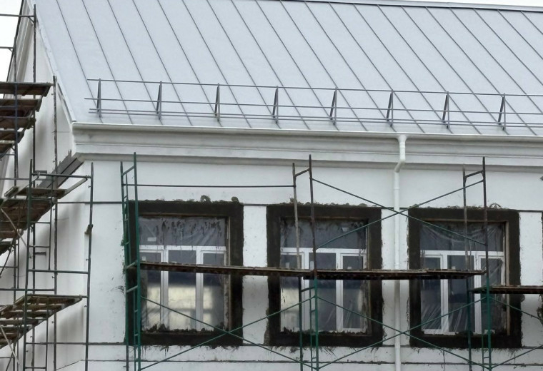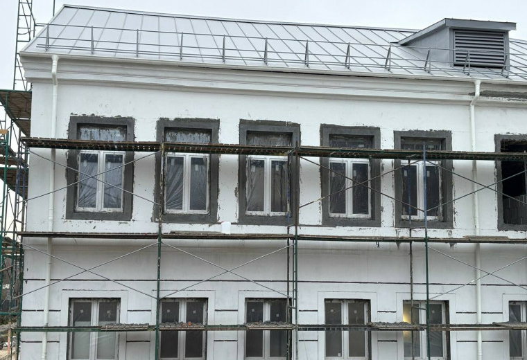 В настоящее время здесь полностью отремонтирована кровля, установлены новые окна и почти завершена шпаклевка фасада. Внутри здания выполнены инъектирование кирпичных стен, усиление перемычек, монтаж профлиста межэтажных перекрытий и балок. Впереди прокладка инженерных коммуникаций и внутренняя отделка.