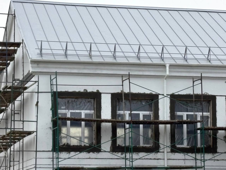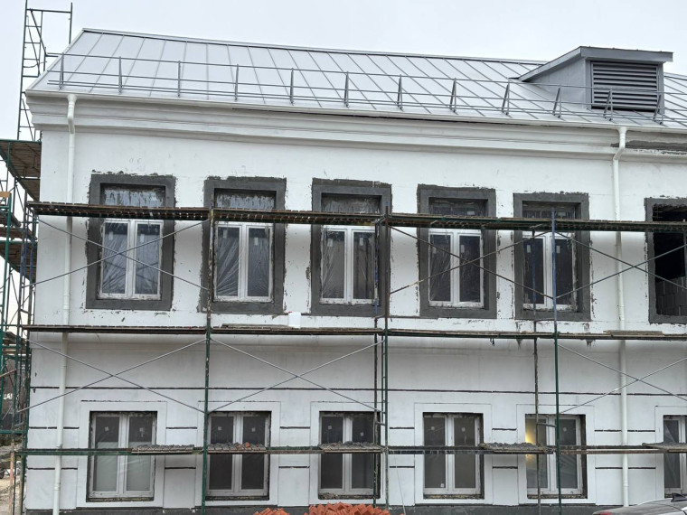 В настоящее время здесь полностью отремонтирована кровля, установлены новые окна и почти завершена шпаклевка фасада. Внутри здания выполнены инъектирование кирпичных стен, усиление перемычек, монтаж профлиста межэтажных перекрытий и балок. Впереди прокладка инженерных коммуникаций и внутренняя отделка.