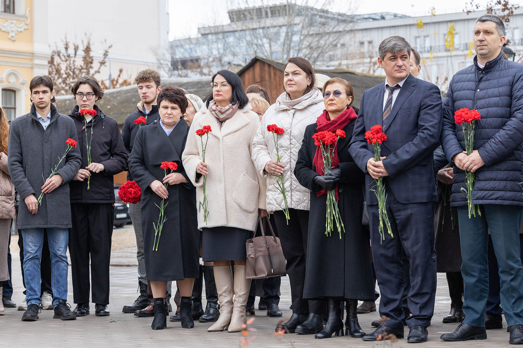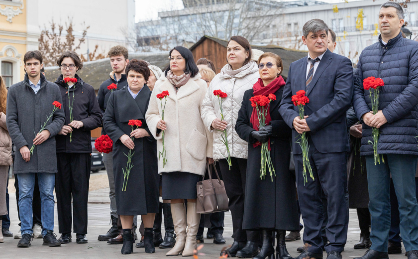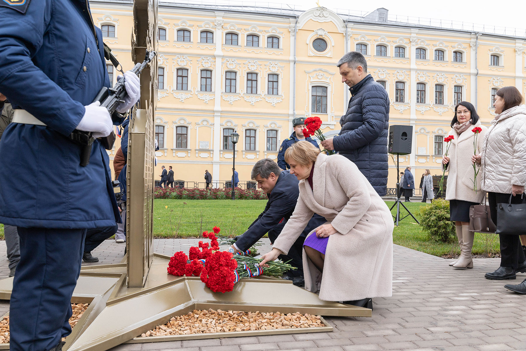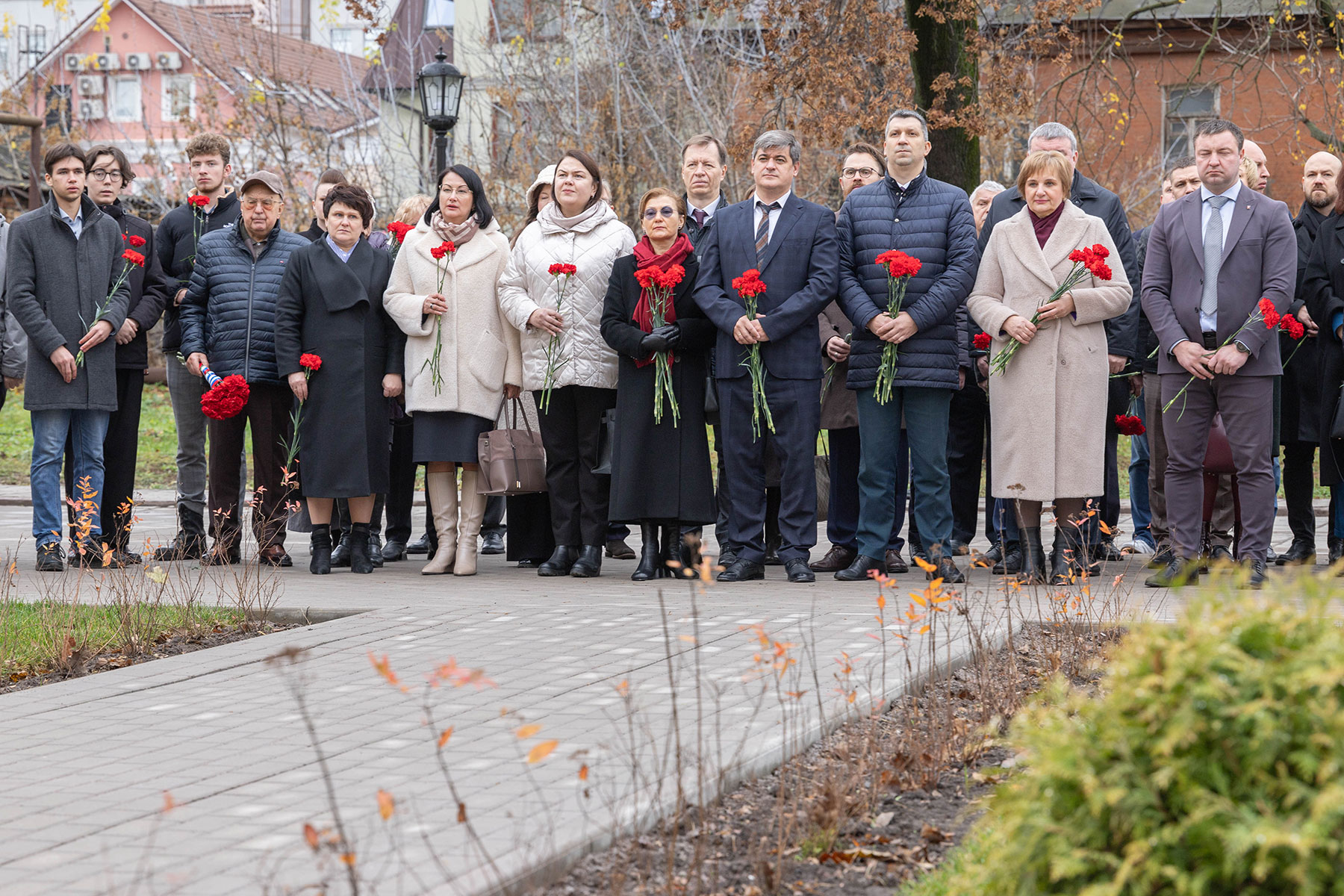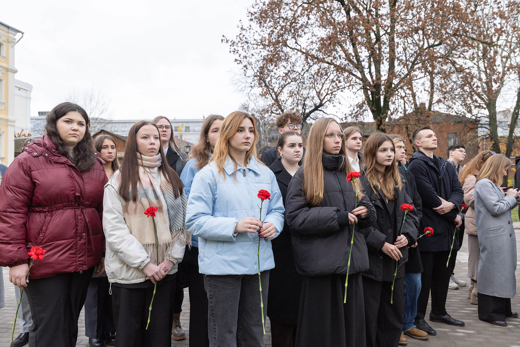 Особенность мемориала — клены, посаженные студентами и преподавателями перед уходом на фронт. Губернатор возложил цветы к памятнику вместе со внуком одного из студентов-фронтовиков Сергеем Данилиным.