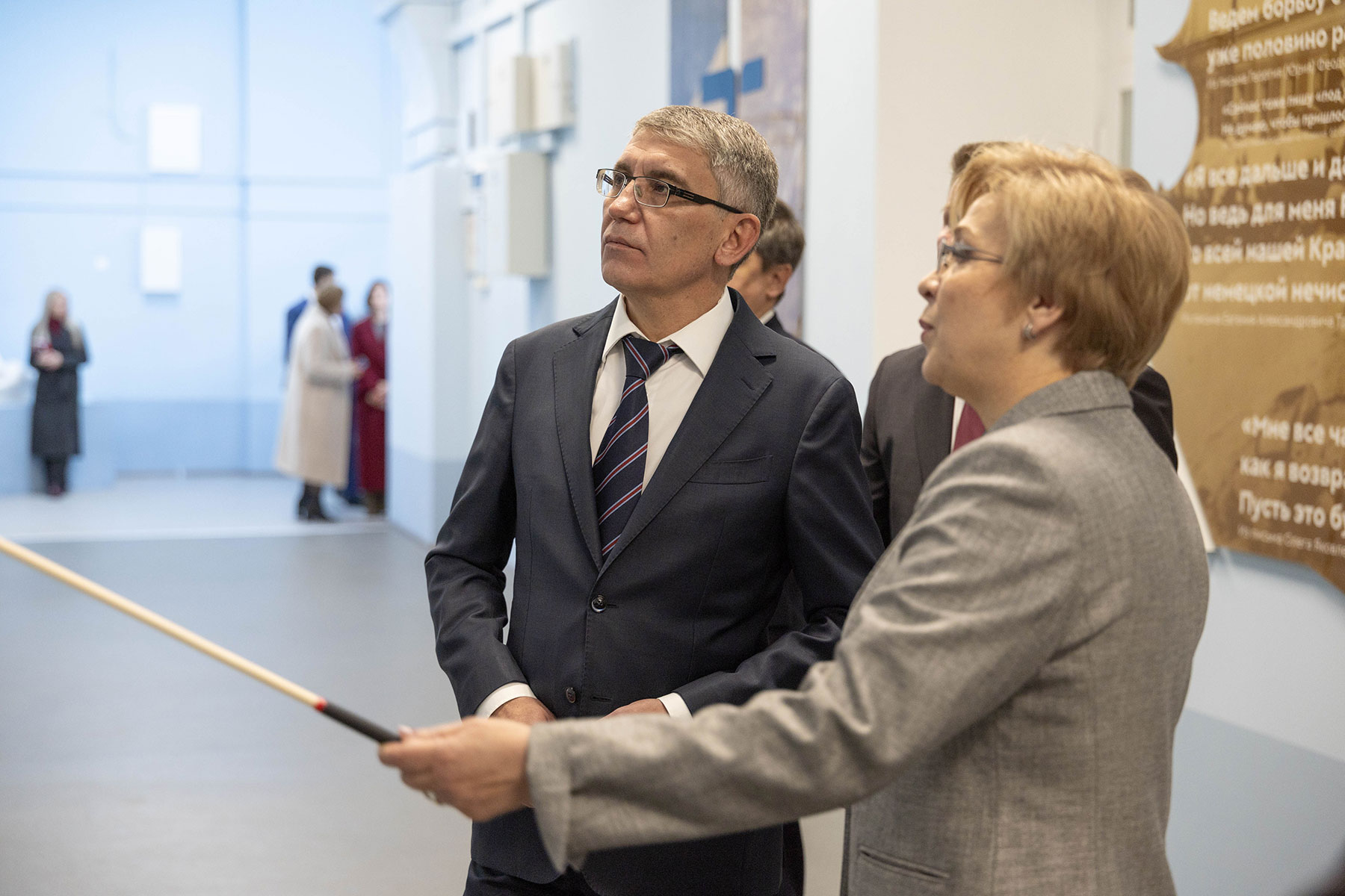 После церемонии Миляев посетил выставку в университете, где ему показали фотографии, письма военных лет и документы о работе института в годы войны. В 1942—1943 годах в здании на Менделеевской, 7, располагался эвакогоспиталь № 1032, где студенты дежурили в палатах и ухаживали за ранеными.