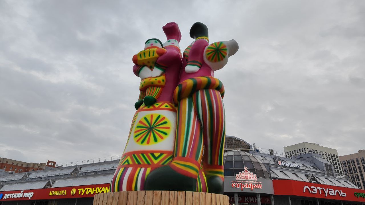 На площади Московского вокзала в Туле установили 5-метровую филимоновскую игрушку