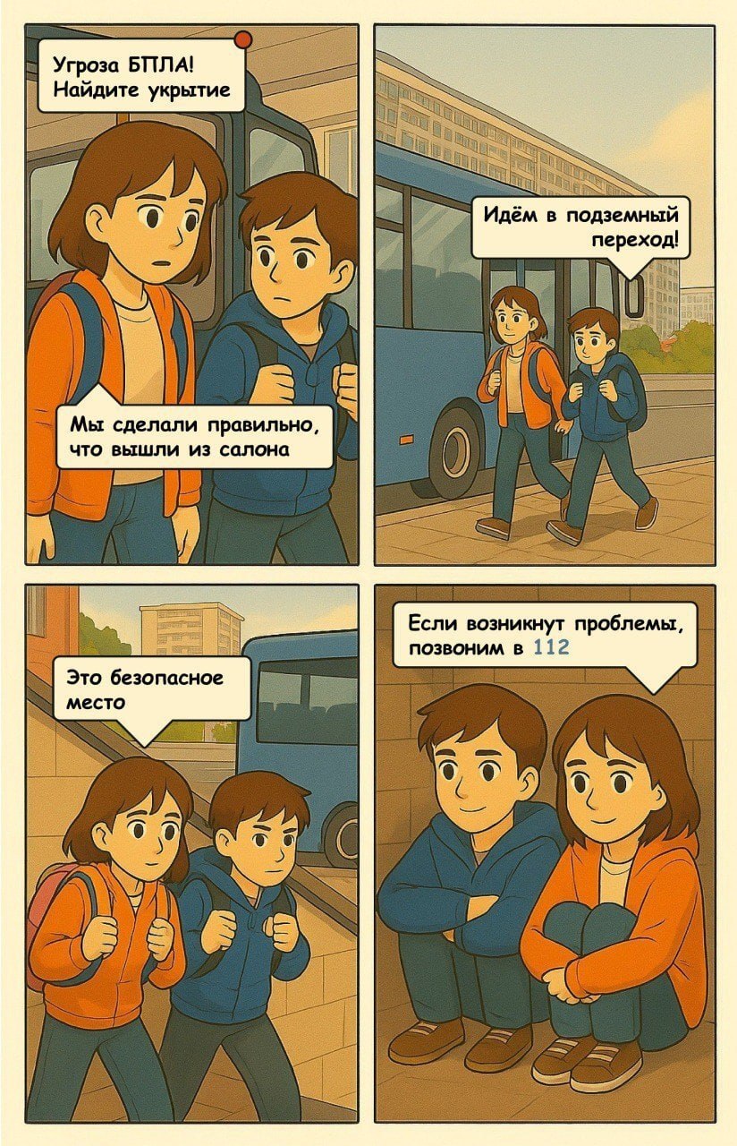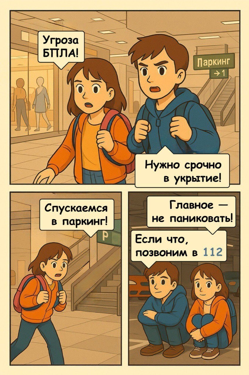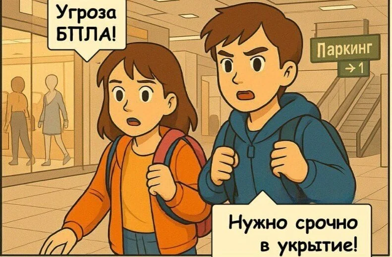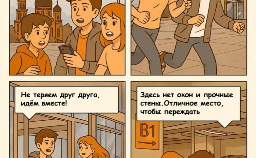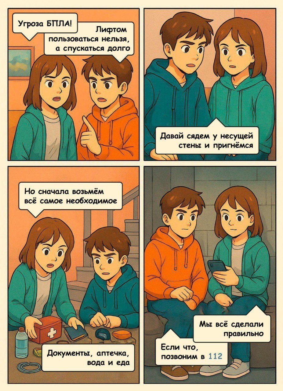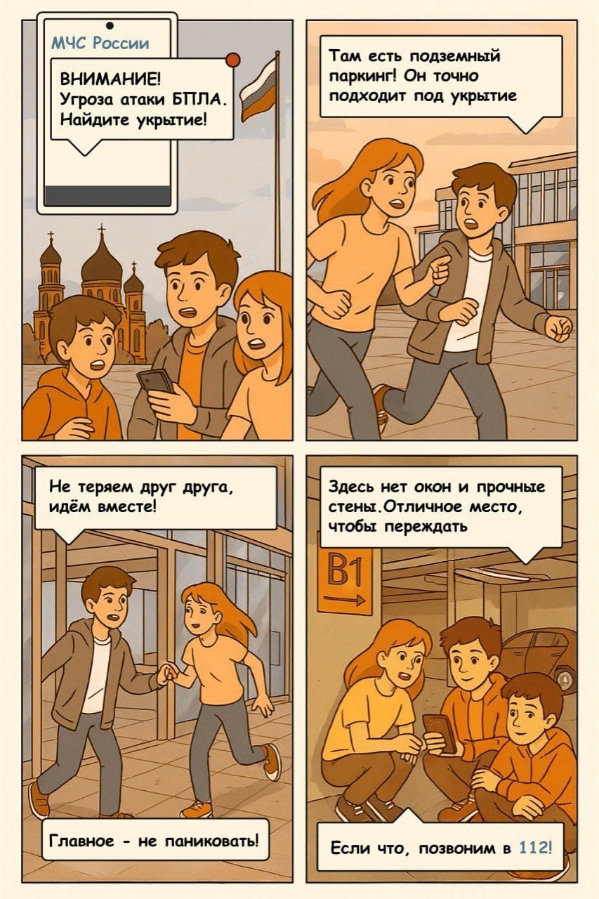 Тульские власти рассказали тулякам о том, что делать во время атаки БПЛА, в формате комиксов.
