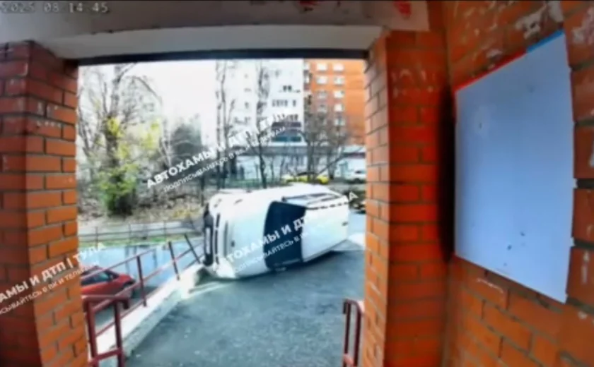 Машина протаранила ограждение у подъезда и легла на бок. Видео с места происшествия появилось в социальных сетях. На записи видно, как автомобиль не останавливается, а резко ускоряется перед парковкой.