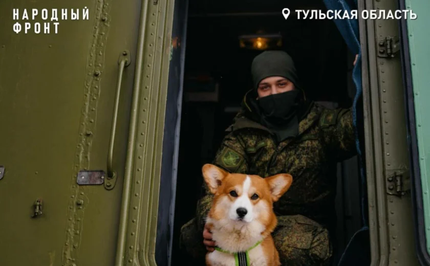Щенок стал частью команды военнослужащего пять лет назад. Тогда «Кувалда» служил в войсках ПВО в Брянской области. Теперь же корги и военнослужащий вместе со своим подразделением перебрались в Тульскую область и базируются здесь.