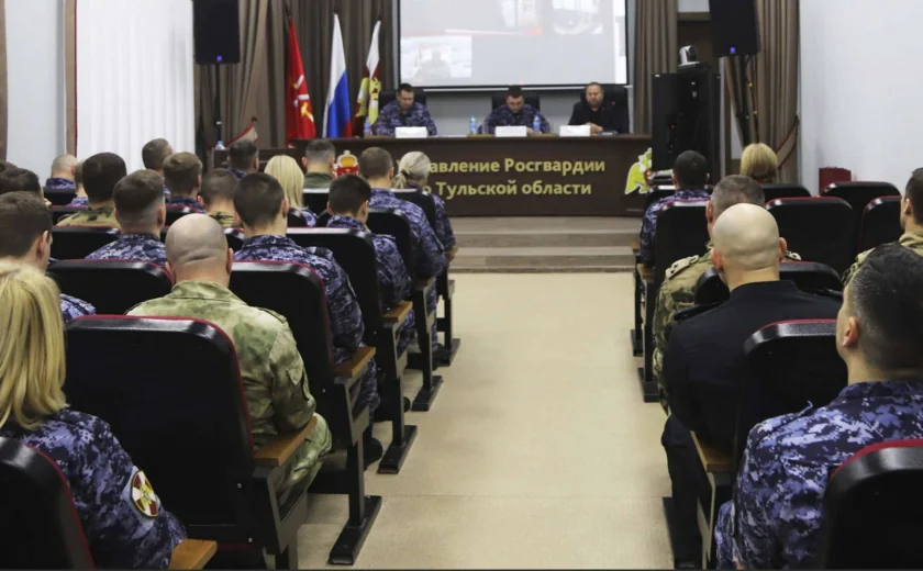 В Управлении Росгвардии по Тульской области подвели итоги служебно-боевой деятельности за 2025 год. Оперативное совещание прошло под руководством начальника регионального управления полковника полиции Эдуарда Гафурова.