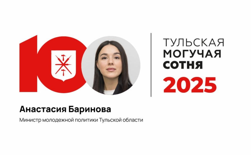 Анастасия Баринова, министр молодежной политики Тульской области, впервые вошла в рейтинг «Тульская могучая сотня» и стартовала в нем с 88-го места. Она назначена на должность год назад — 3 декабря 2024 года.