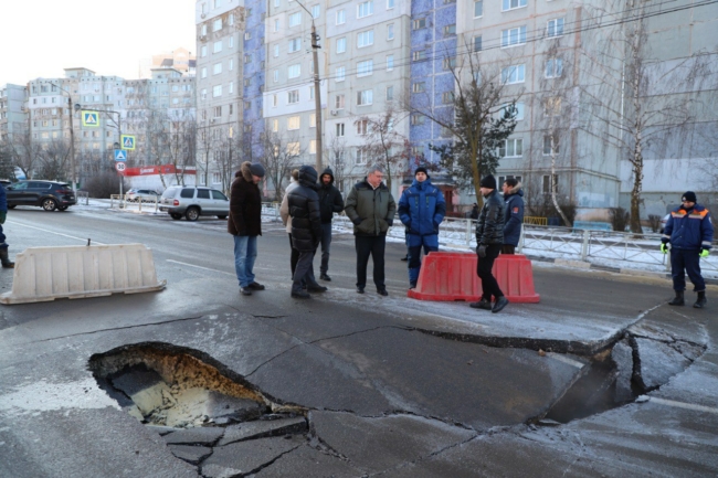 «На месте порыва частично провалилась дорога. До 24:00 26 декабря на этом участке ограничено движение всех видов транспорта. Автобус № 29 будет ездить по измененной схеме