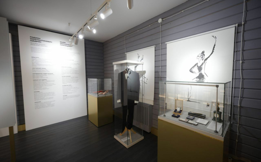 В рамках торжественного открытия была представлена выставка подлинных предметов Родиона Щедрина и Майи Плисецкой из коллекции Бахрушинского музея. В том числе костюм-тройка, часы из змеевика, перьевая ручка, удостоверения, награды и редкие рукописи — письма и нотные записи. Особое место занимают веер Плисецкой для партии Китри в балете «Дон Кихот» и пуанты 1970-х годов.