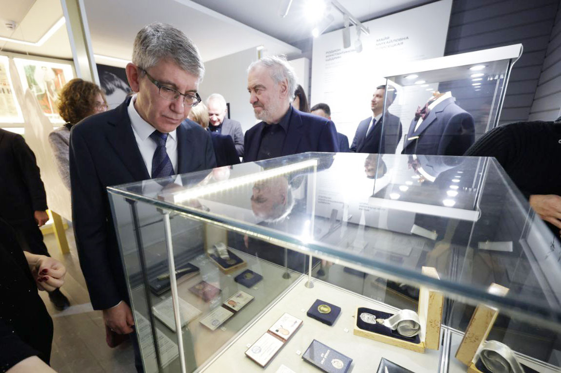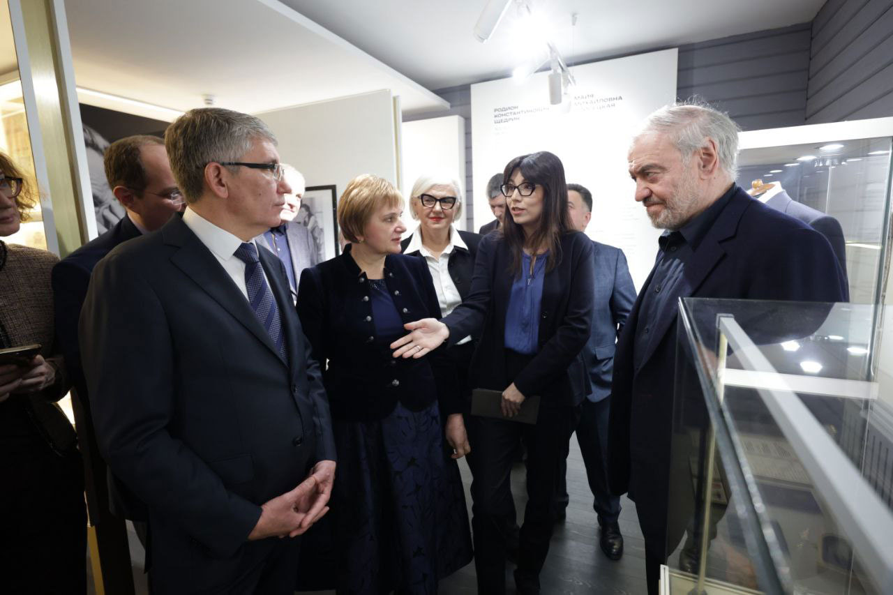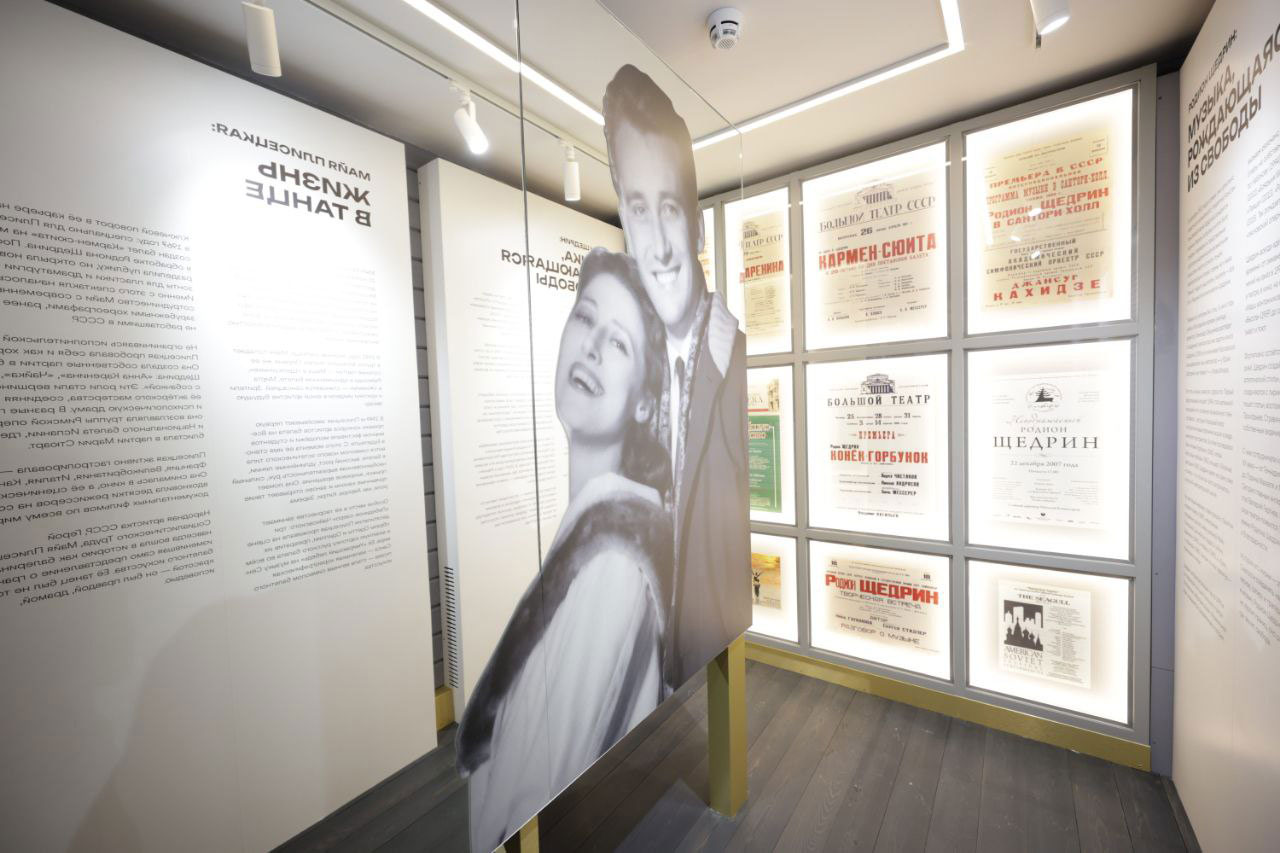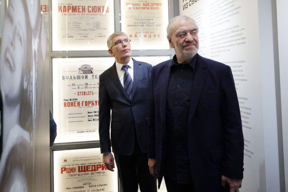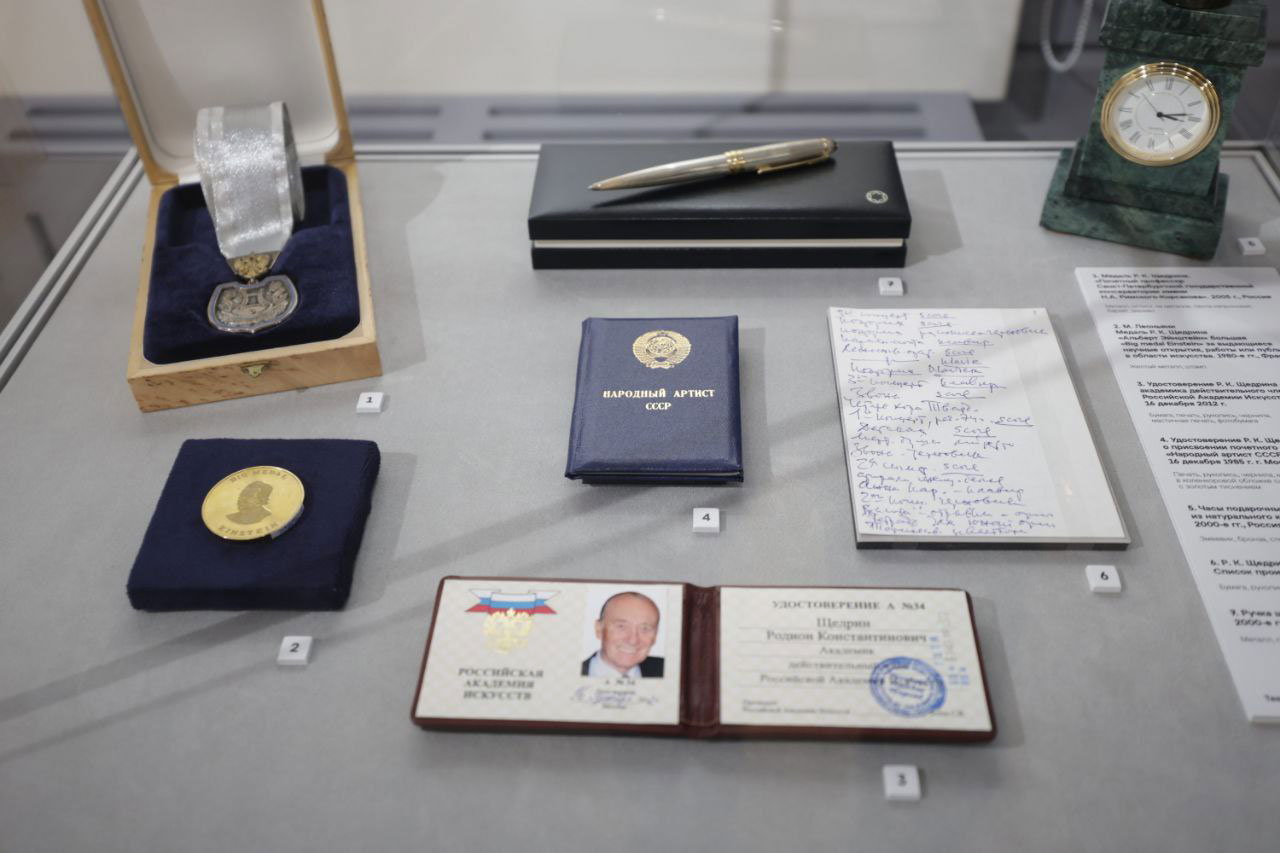 В рамках торжественного открытия была представлена выставка подлинных предметов Родиона Щедрина и Майи Плисецкой из коллекции Бахрушинского музея. В том числе костюм-тройка, часы из змеевика, перьевая ручка, удостоверения, награды и редкие рукописи — письма и нотные записи. Особое место занимают веер Плисецкой для партии Китри в балете «Дон Кихот» и пуанты 1970-х годов.