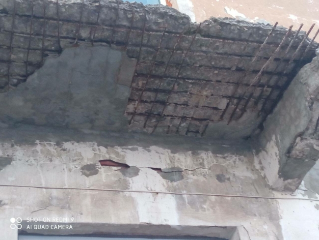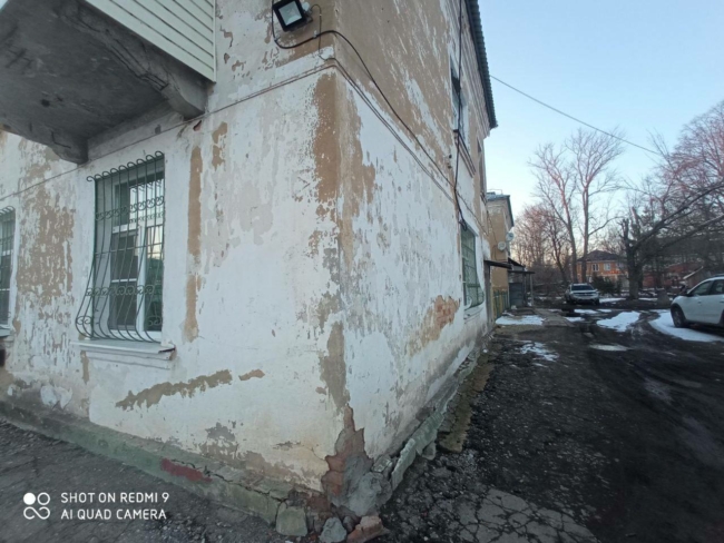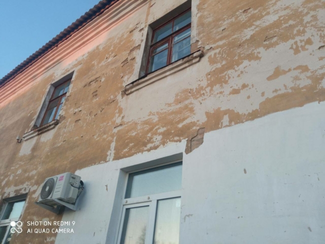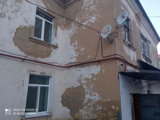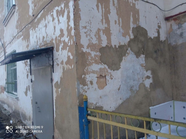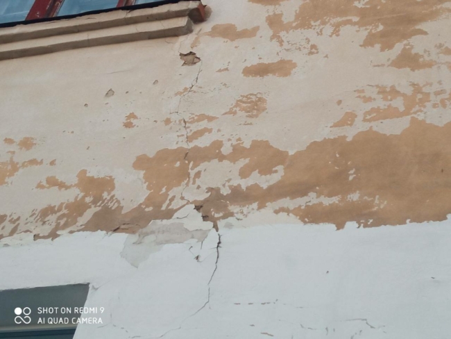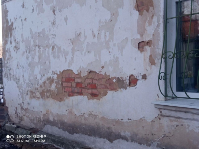 Помимо этого, фасад и фундамент разрушены, они покрыты трещинами и где-то уже виден кирпич. Каждый день, проходя под балконами здания, граждане подвергаются опасности: на них в любой момент может упасть камень или балконная плита.