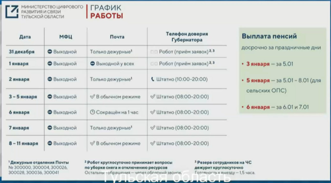 - 2 января — дежурные офисы;