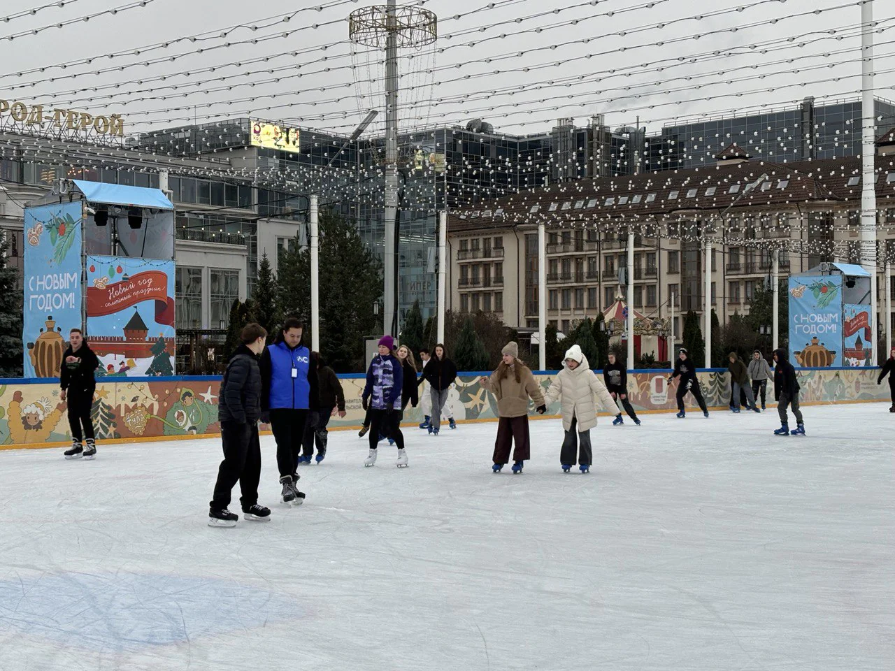 При необходимости можно взять коньки или детского помощника в павильоне катка. Для этого нужно внести залог: водительское удостоверение, СНИЛС, ИНН или 2 тысячи рублей. После возврата коньков залог вернут обратно.