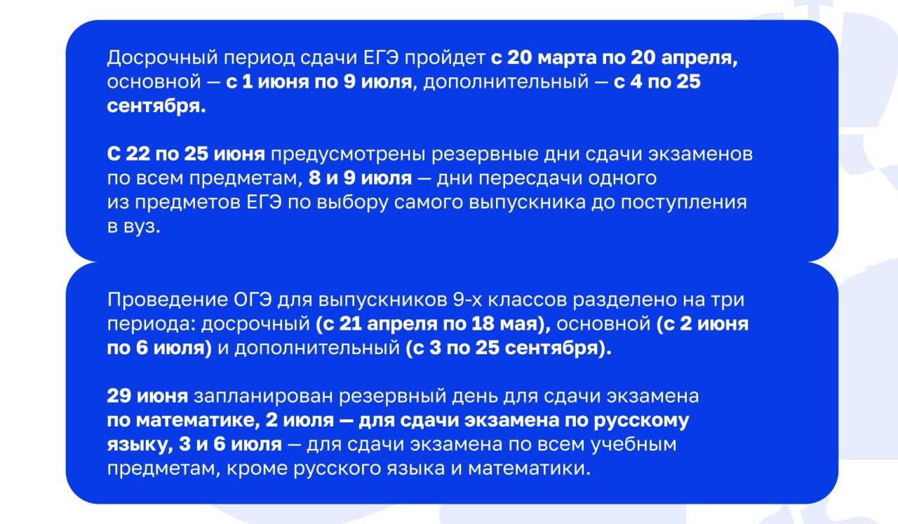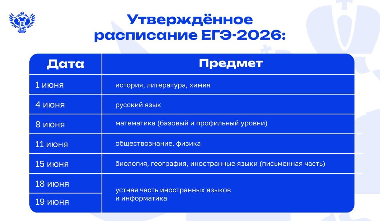 Утверждено расписание проведения ЕГЭ и ОГЭ на 2026 год. Об этом сообщило Минпросвещения РФ. Была также опубликована информация о резервных днях для сдачи экзаменов.