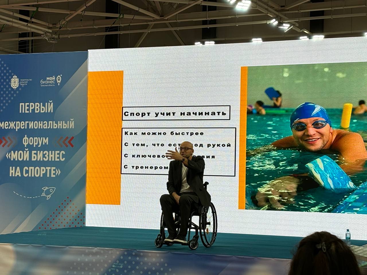 На форуме присутствовал Дмитрий Чешев, пловец-параатлет, участник и победитель множества заплывов на открытой воде, социальный предприниматель. Он рассказал «Тульской прессе» о том, как уроки спортивной жизни помогли ему реализовать себя в предпринимательской деятельности и социальных проектах.