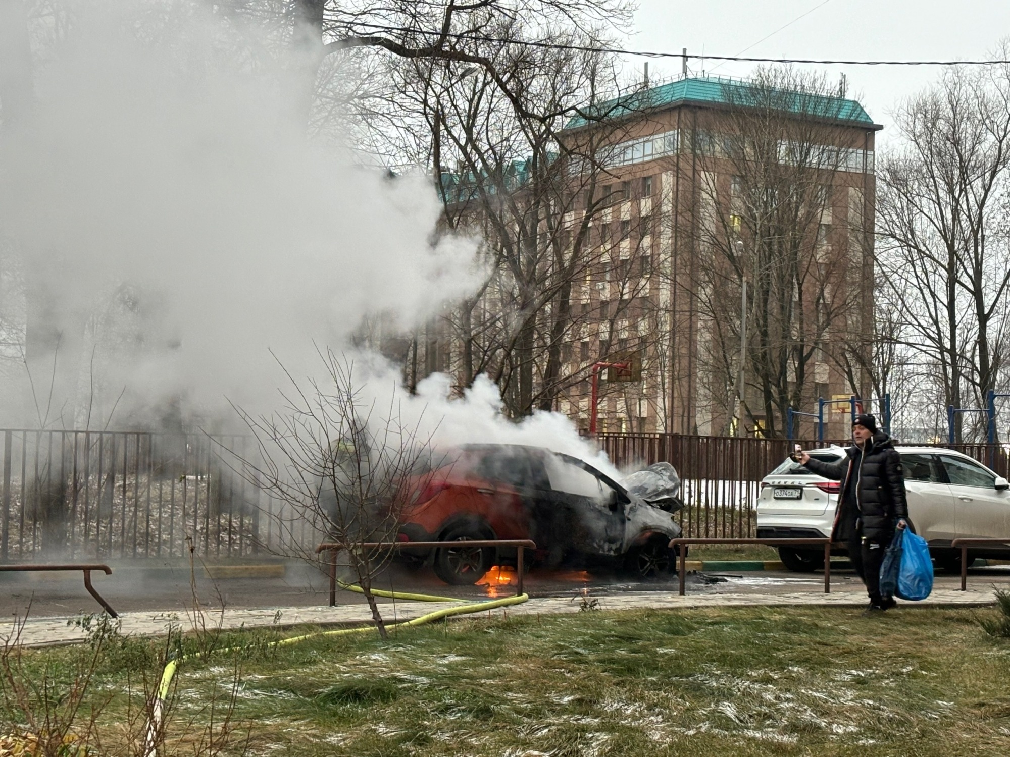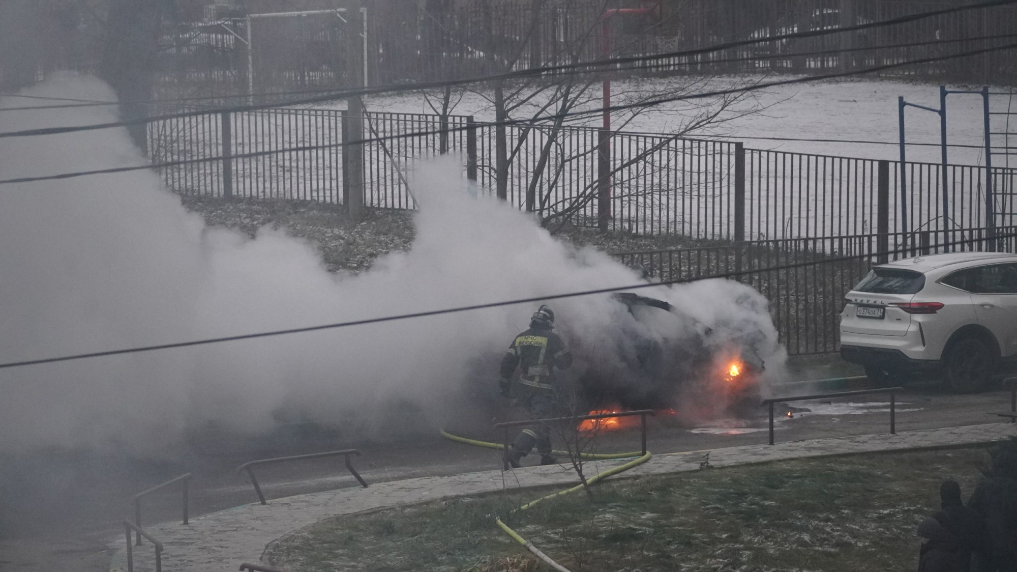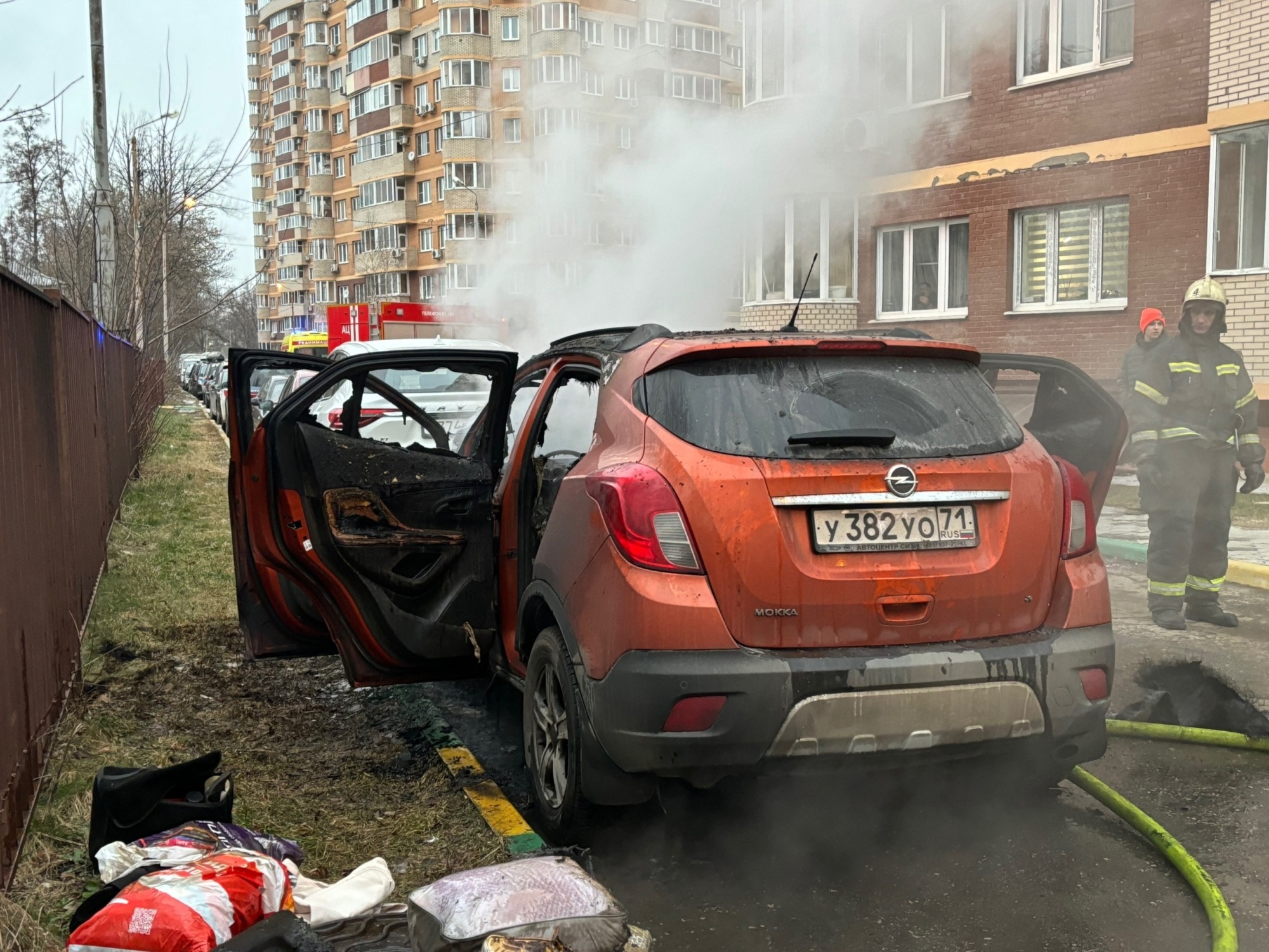Вечером пятницы, 19 декабря, в Туле на улице Михеева все заполонило дымом. Как выяснилось, причина в горящей легковушке. Во дворе одной из многоэтажек вспыхнул Opel Mokka. На месте уже работают спасатели.