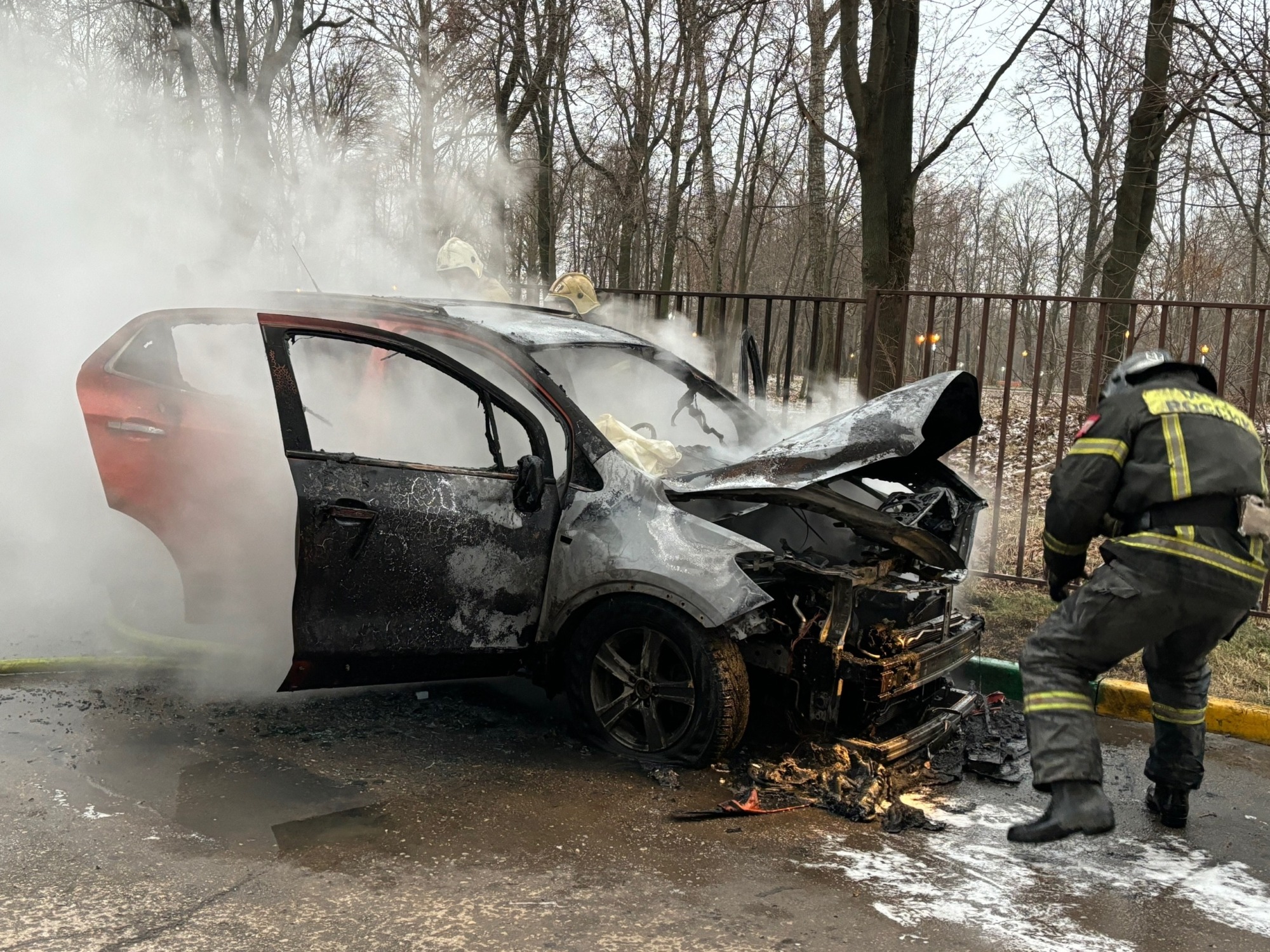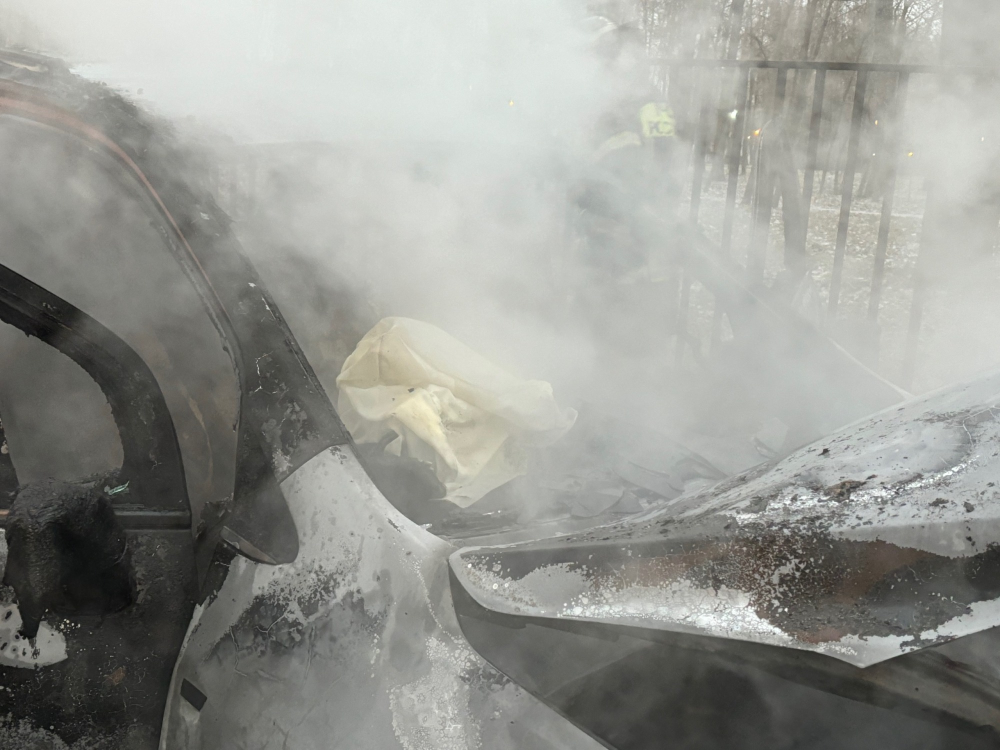 Как сообщает корреспондент «Тульской прессы», машина практически полностью выгорела. В салоне сработали подушки безопасности. По словам хозяйки автомобиля, тот был исправен:
