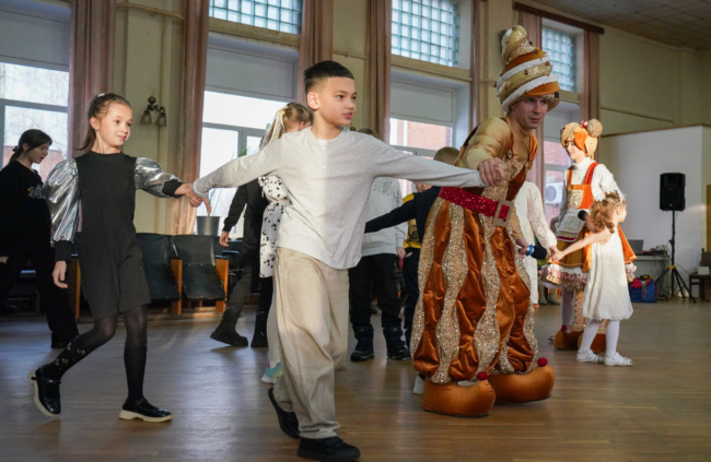 Помимо этого, для детей организовали специальное поролоновое шоу. В рамках игры ребята должны были построить ледяной замок, в котором поместятся абсолютно все, даже Дед Мороз со Снегурочкой.