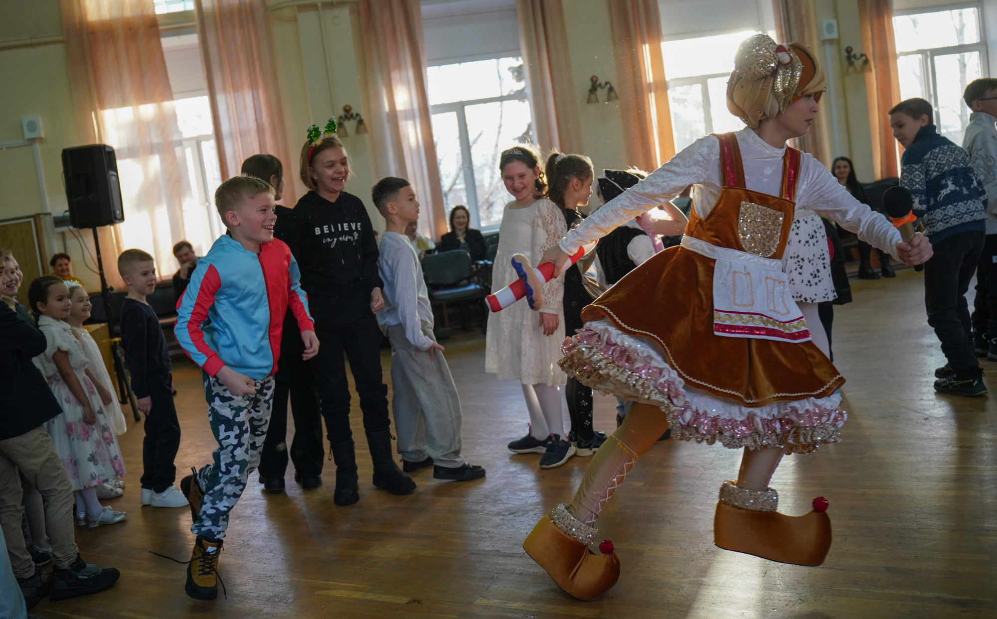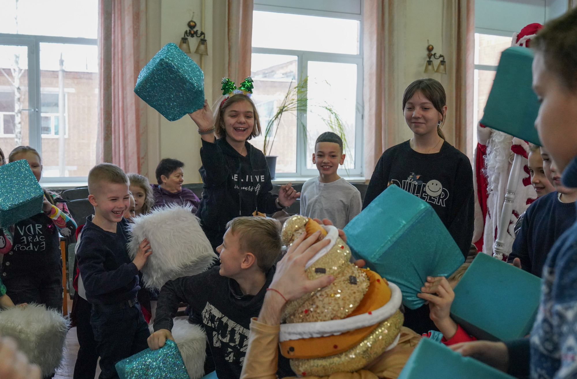 Помимо этого, для детей организовали специальное поролоновое шоу. В рамках игры ребята должны были построить ледяной замок, в котором поместятся абсолютно все, даже Дед Мороз со Снегурочкой.