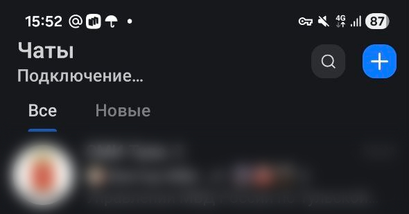 Напомним, что в Тульской области действует режим опасности по БПЛА и наши корреспонденты решили проверить, работает ли мессенджер. К сожалению, нет. Чаты не загружаются, и на экране висит значок «Подключение».