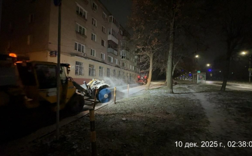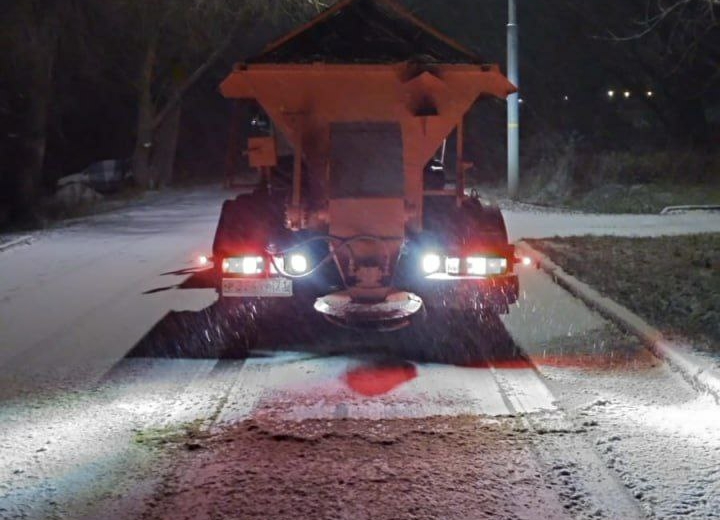 Техника, работающая в круглосуточном режиме, очищала тротуары, дороги и остановки.