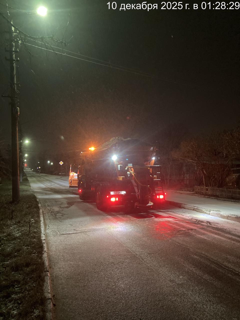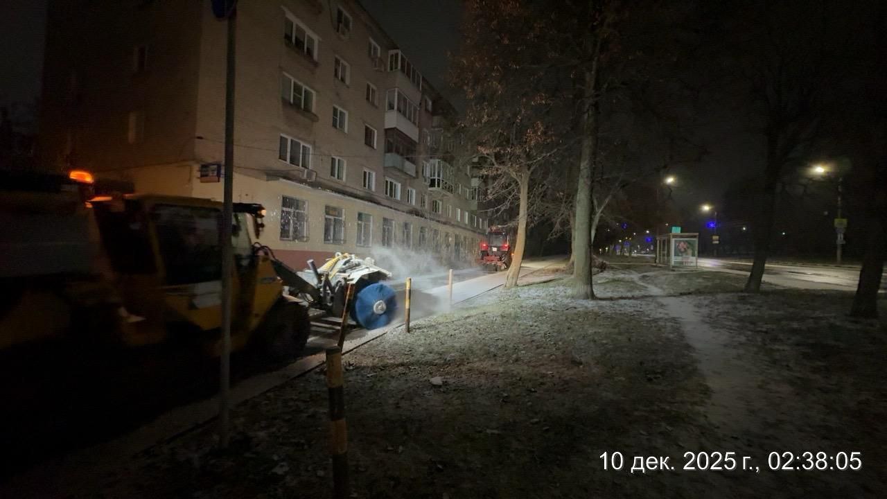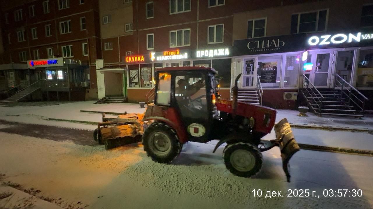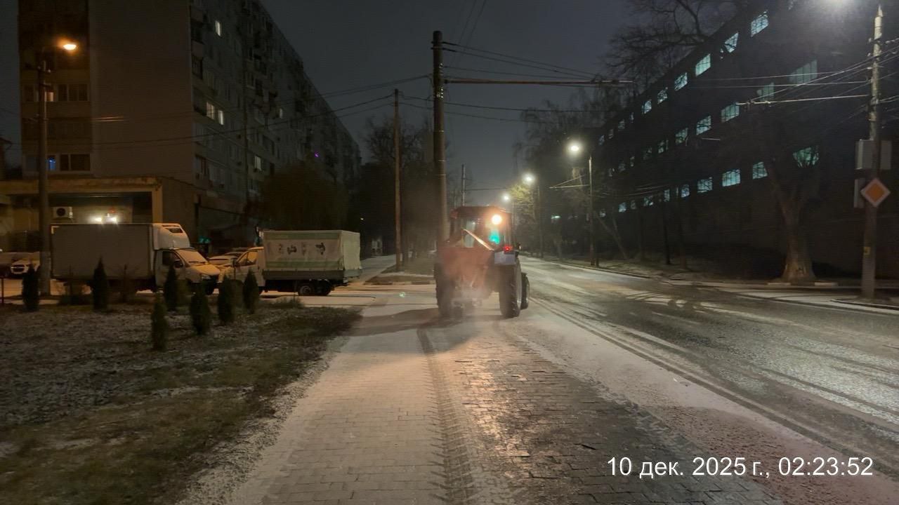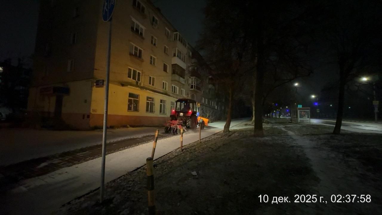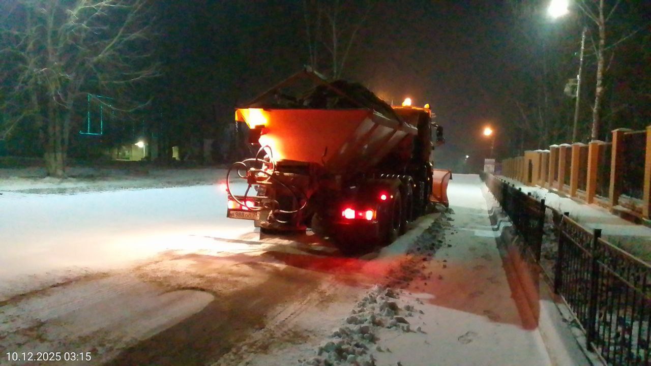 Техника, работающая в круглосуточном режиме, очищала тротуары, дороги и остановки.