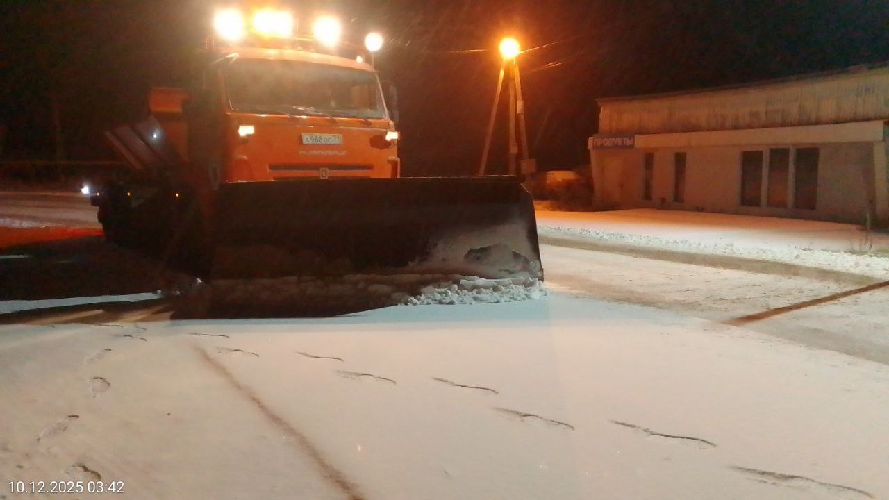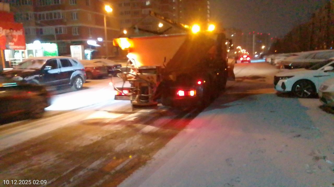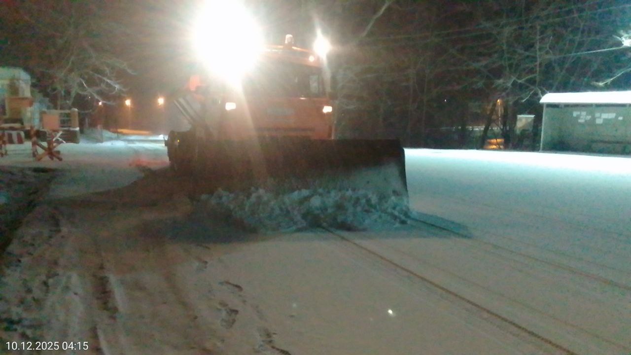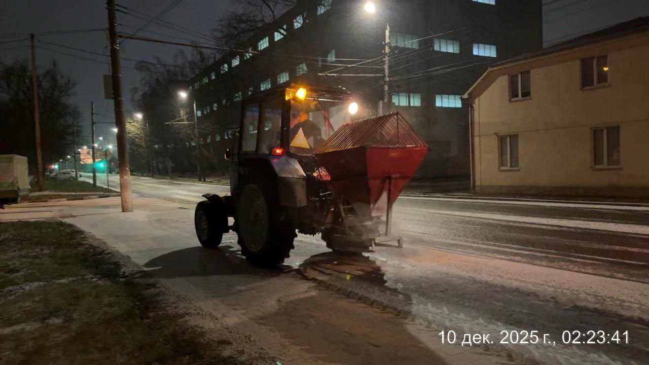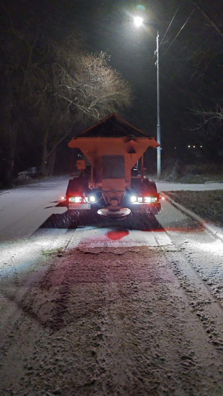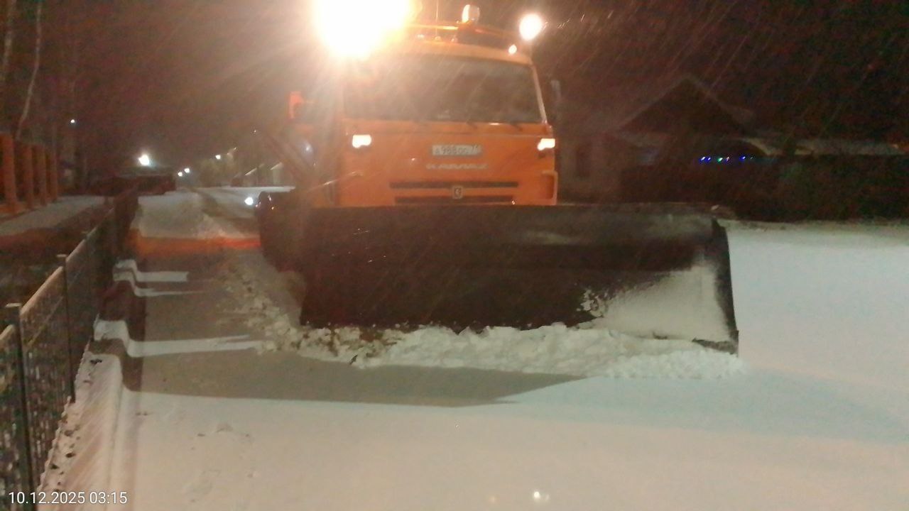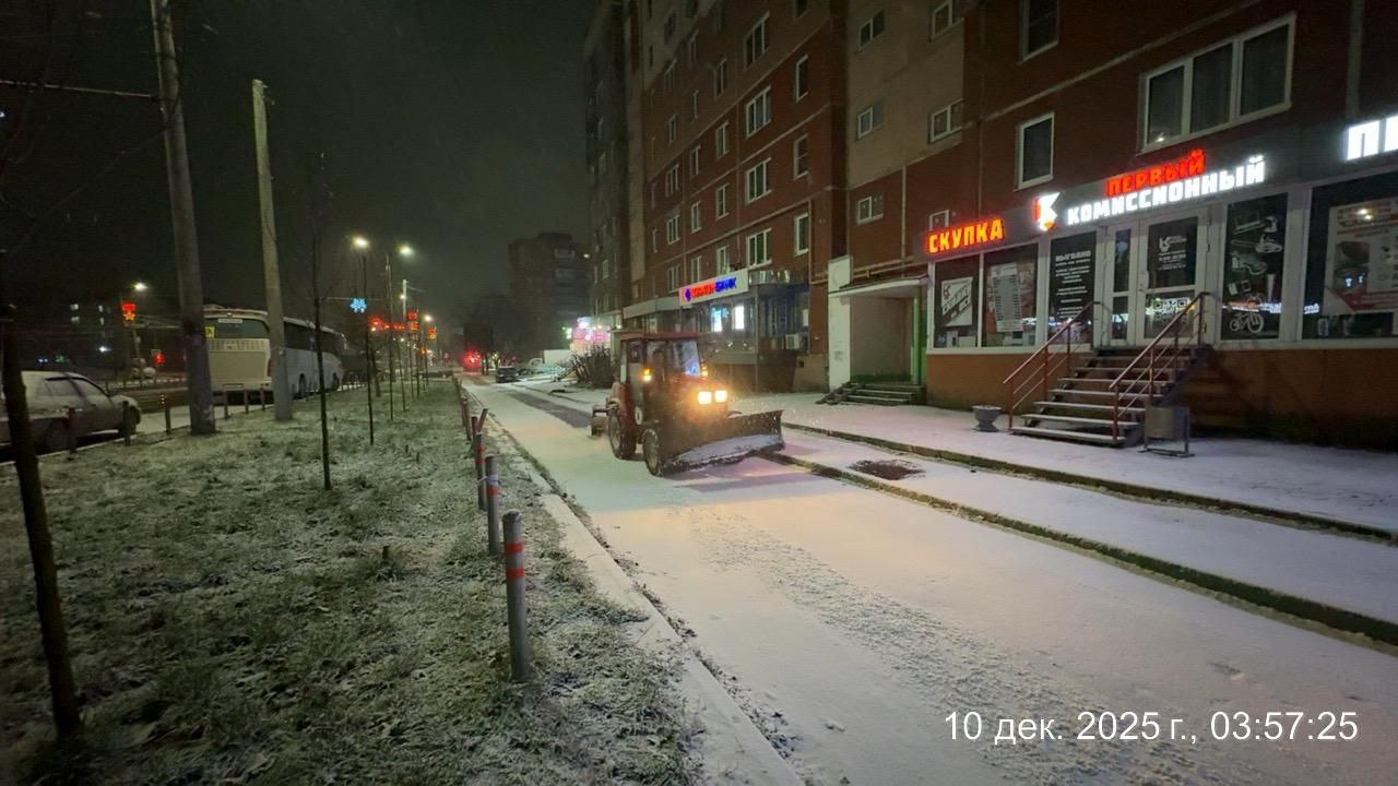 Техника, работающая в круглосуточном режиме, очищала тротуары, дороги и остановки.
