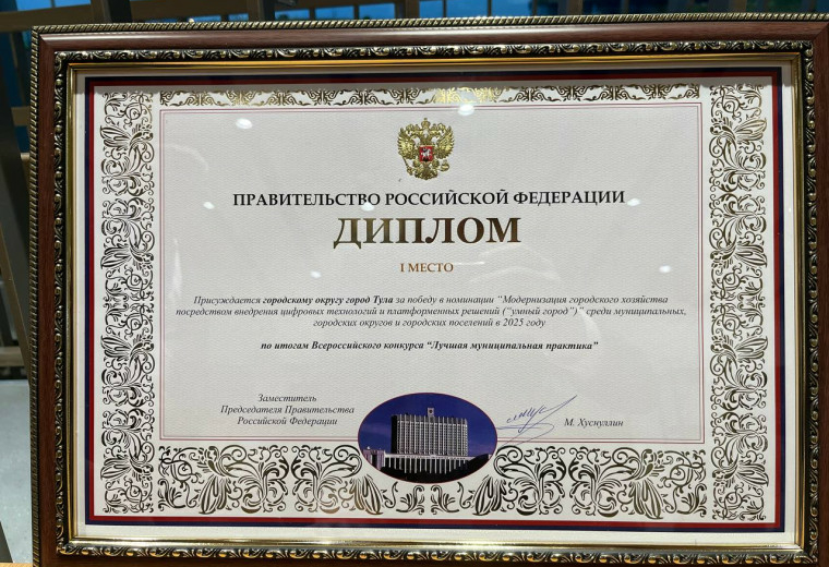 Проект города Тулы «Интегрированная цифровая платформа «Муниципальный центр управления»» стал лучшим в номинации «Модернизация городского хозяйства посредством внедрения цифровых технологий и платформенных решений». Диплом за первое место по поручению главы администрации города Тулы Ильи Беспалова получил его заместитель Максим Щербаков.