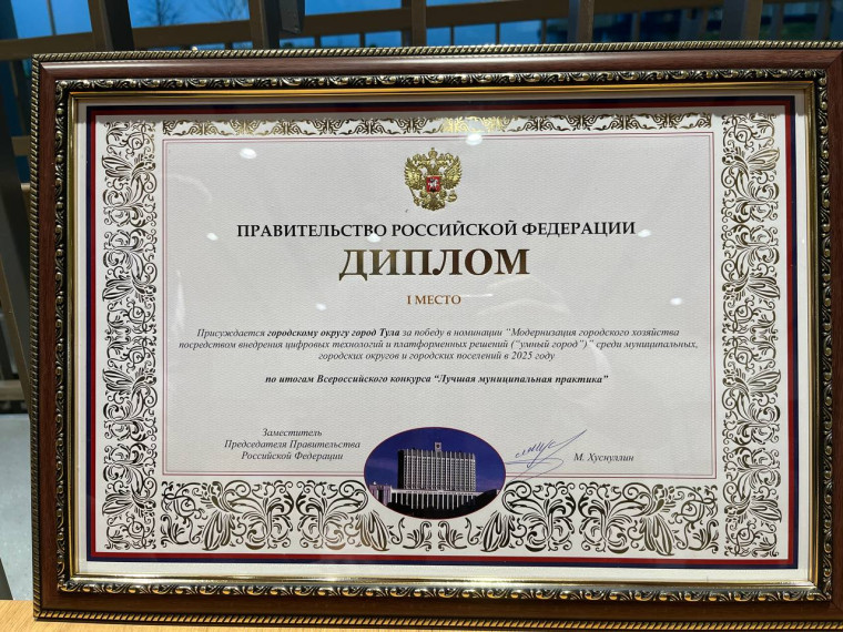Проект города Тулы «Интегрированная цифровая платформа «Муниципальный центр управления»» стал лучшим в номинации «Модернизация городского хозяйства посредством внедрения цифровых технологий и платформенных решений». Диплом за первое место по поручению главы администрации города Тулы Ильи Беспалова получил его заместитель Максим Щербаков.